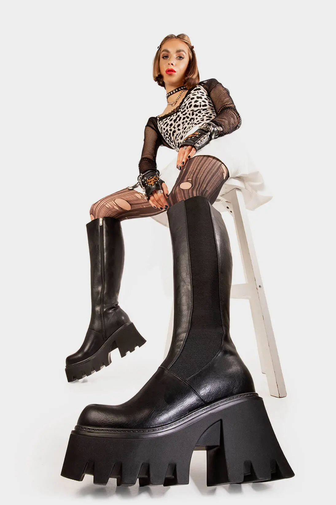 Lamoda For You Black PU Chunky Platform Knee High Boots – Gothic Festival